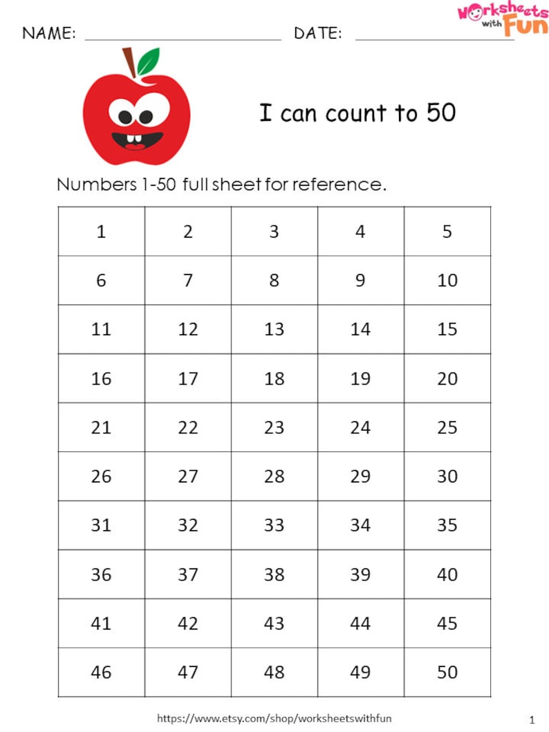 Missing Numbers 1 50 Worksheets Preschool Printables Etsy