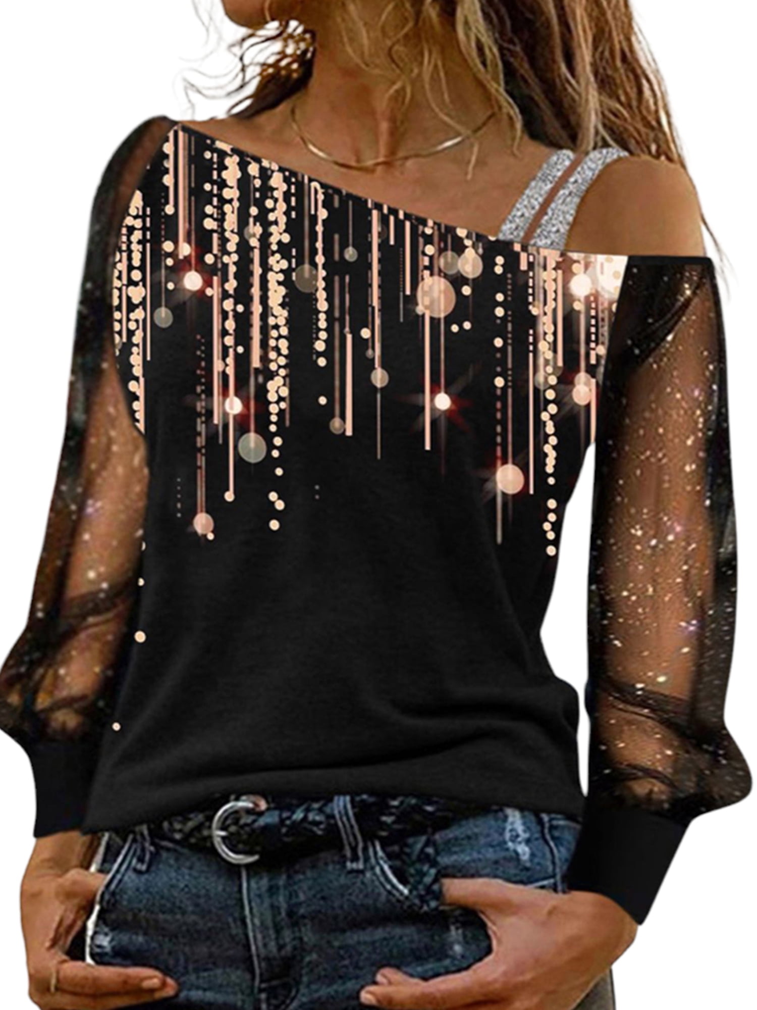 Cilcicy Women Raglan Sleeve Pattern Top Cold Shoulder Sleeve T Shirts Walmart Com